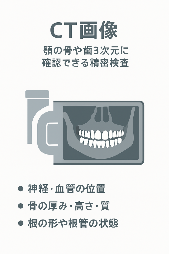 顎の骨や歯を**3次元(立体的)**に確認できる精密検査です。