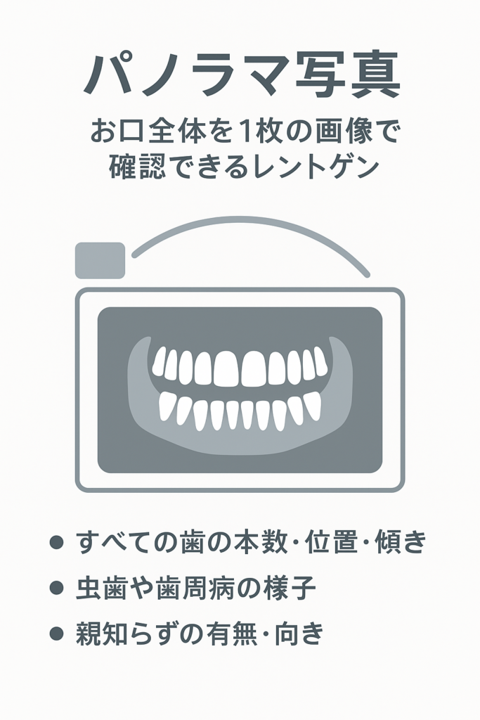 お口全体を1枚の画像で確認できるレントゲンです。