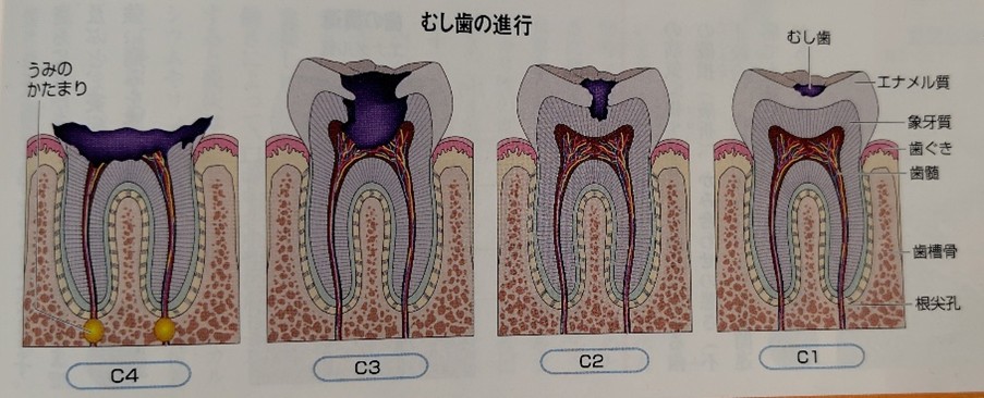 虫歯は英語でカリエス(caries)といい、Cはその頭文字です。全部で5段階で示します。